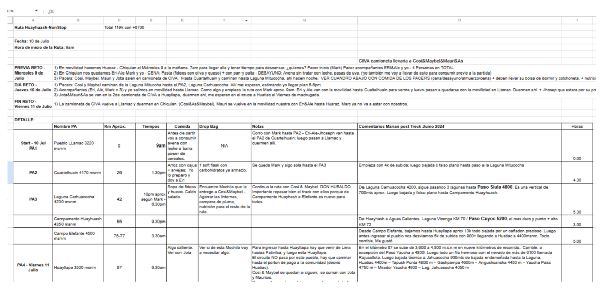 A partir de ese momento, todos los días fui tomando notas durante el trayecto y estudiando todo: el terreno, el clima, los pasos de montaña, la gente que había, pros y contras. El resto del año fue lo que me mantuvo contenta. Post-reconocimiento ya me visualizaba en Huayhuash al año siguiente.
